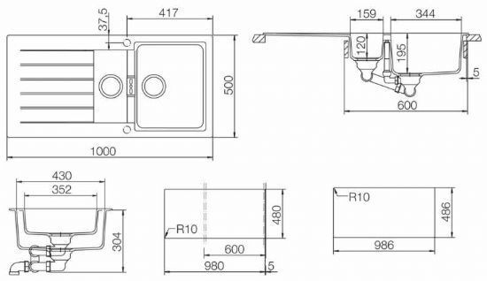 Комплектация: Отводная арматура с переливом и сифоном с возможностью подключения посудомоечной или стиральной машины. Коландер из нержавеющей стали.