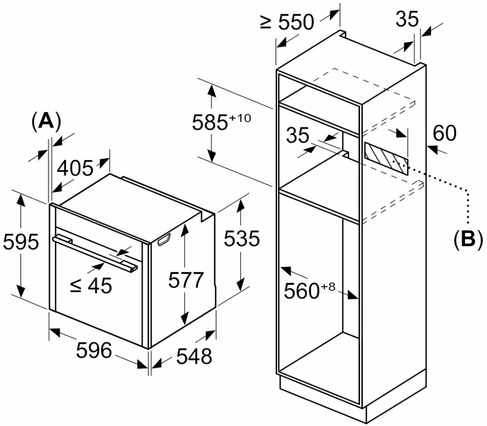 • Размеры ниши для встраивания, см (В х Ш х Г): 58.5-59.5 х 56-56.8 х 55