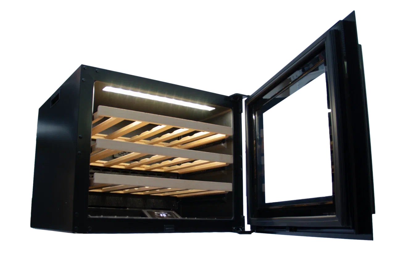 - Реверсивная дверь, которая позволяет устанавливать два винных шкафа рядом;